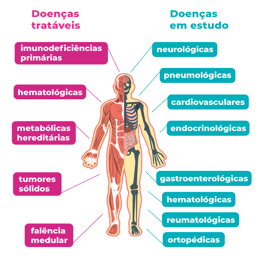 Doenças tratáveis e em estudo com células-tronco do cordão umbilical